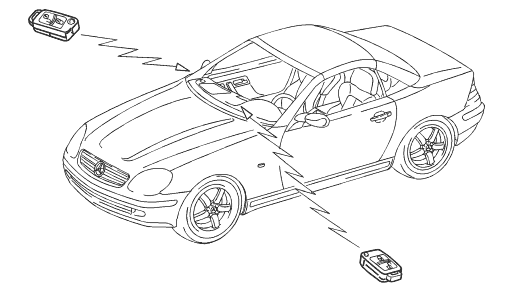 | The radio frequency/infrared remote central locking (RFL/RCL) has been enlarged compared to the infrared remote central locking (RCL) by a radio frequency operating unit and reduced to 2 IR exterior receivers (models 129/140). The radio frequency signal permits a greater range of operation of the remote control.