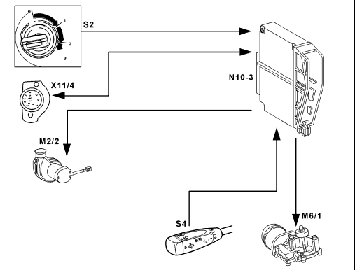 M6/1 Wiper motor N10-3 Multi-function control module S2 Starter switch S4 Combination switch X11/4 Data link connector |